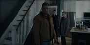 At the Franz's household, The pair meet Angela and her young son, Mikey. Angela is devastated by her husband's death. When Reacher inquires about the timeline up to his death, a tearful Angela wsays that she was told by the NYPD that Franz went missing because he was probably on a case or partying with the wrong crowd. She did not believe either of these two possibilities as they did not match up with his behavior. Returning from the Police station, Angela come back to find their house had been ransacked, although nothing valuable was taken and the burglar's identities remained a mystery. Angela gives the police the key to Calvin's office where they find that it has also been trashed and they did not discover anything of significance. When Mikey chants the unit's mantra, Neagley approaches and tells him their shared history much to an emotional Reacher. As they depart, Reacher takes notice of a black sedan that had been tailgating them since the diner.